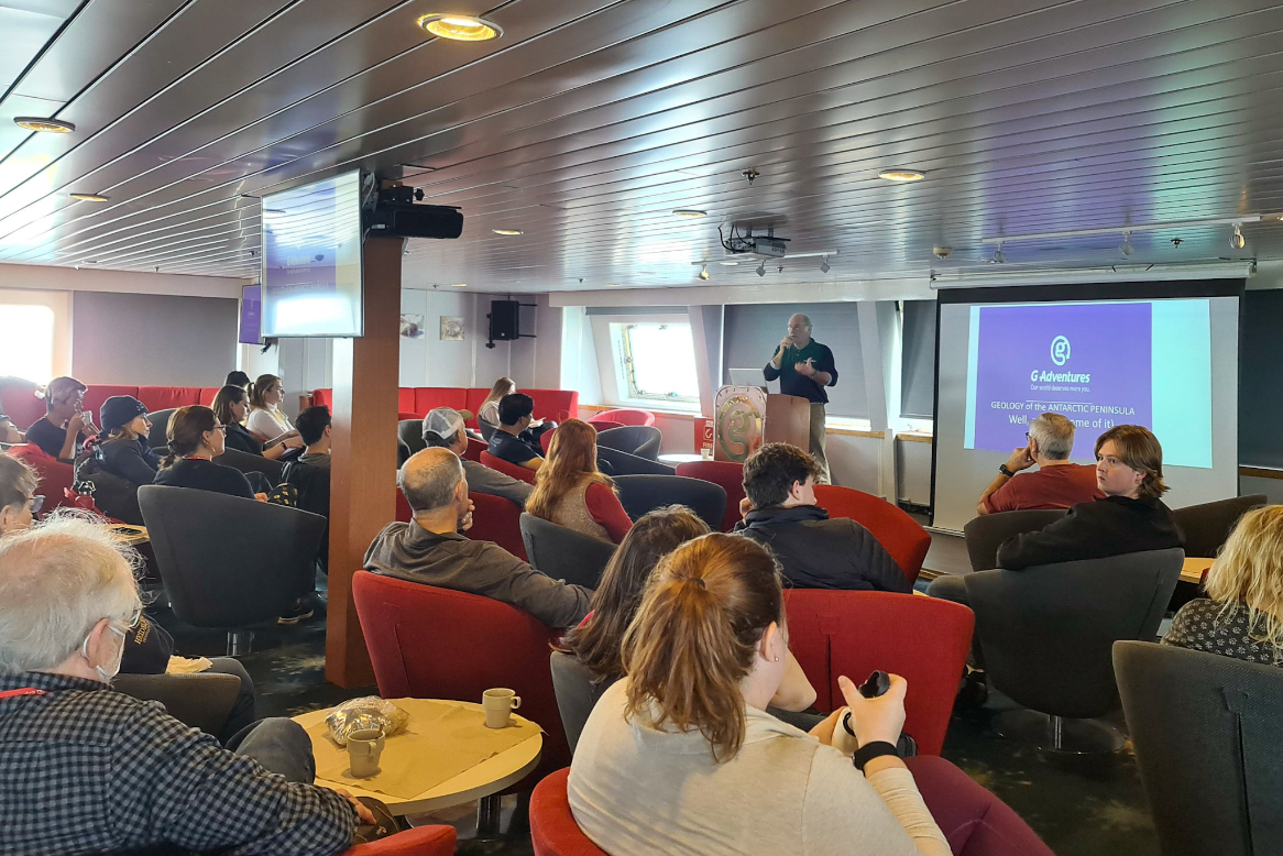 Breakfast was decent, it was a buffet affair. I tentatively introduced a good quantity of food to my stomach and willed it to stay in place. So far so good. The resident geologist, Keith, was giving a lecture on ice and shit in the lounge so we were watching that but I could barely keep my eyes open. Not because what he was saying wasn’t fascinating, it very much was, but between the tablet still very much wrapping my brain up in cotton wool and the broken sleep I was knackered.