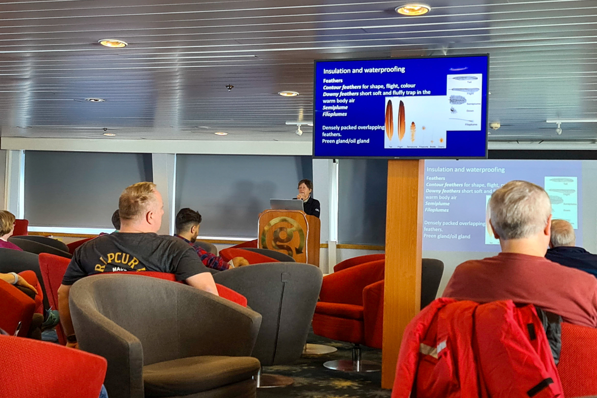 I was worried that we’d get bored on the Passage and downloaded a couple of books but they keep you busy. That afternoon we went to hear Lyn, the ornithologist, talk about the various seabirds we might be lucky enough to see. It was so interesting. She told us all about gulls, terns and prions, and she explained how seabirds deal with the salinity and the cold of life at sea.