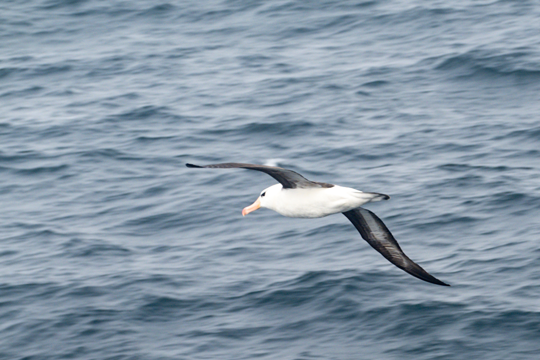 That evening, just before dinner, we were all invited to the lounge for a free champagne and to be introduced to the Captain and the senior staff. He seemed lovely. I really didn’t need the champagne though, I was doing alright until that point. I thought I might skip dinner until a call went over the PA that a wandering albatross had been spotted, a bird with the longest wingspan in the world, and wildlife is basically the reason we were here so I threw on my nice new coat that they’d given us all for keeps and went up to see it.