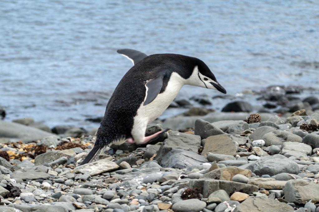 There was also a chinstrap penguin wandering up and down the beach. We asked why it was alone, Jeff said they were just stupid. Lyn later said that it had probably just rocked up from a nearby colony and would head back there later. It was collecting stones though which is apparently something they do when they’re nest building. Maybe Jeff was right.