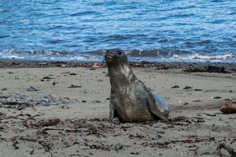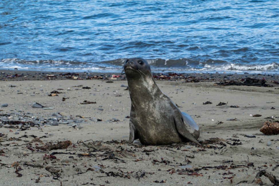 A bit further along Jeff, the resident photographer, was chilling with a load of juvenile elephant seals. You can’t tell their gender until the males start growing their proboscis, and there were a few with the start of a trunk but mostly they could have been anything. Jeff said they were moulting so they couldn’t swim, they just had to hang out on the beach until they grew their fur back. Apparently it’s not a fun experience for them at all.