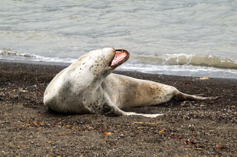 The staff had said that yesterday was the first time they’d seen leopard seals all season and now there was one right here on the beach giving exactly zero fucks about identical red clad bipeds gawping at it, waiting for it to yawn. Because that’s what you want to see, that ridiculously terrifying yawn. It’s almost like it unhinges its jaw like a fucking snake. They’re not the cutest seal in the ocean, bless it, with its Joker energy grin. Its also got a definite head and neck unlike most seals which are just chonky torpedo bois. Every time it shifted slightly we all readied cameras, then eventually it threw its head back in the most dramatic yawn I’ve ever seen from a mammal, and I live with Tarrant, the undisputed queen of The Dramatic.