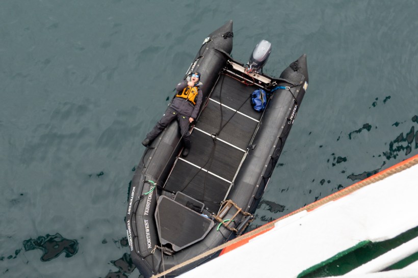 I got my towel, my hug and my shot and hung around for a bit to cheer a few more people on. My biggest worry was getting warm again but honestly once you’re wrapped up it really doesn’t take long and there’s a sauna right there if you really need it. We got dressed and went up to the top deck to watch a few more people execute all manner of jumps ranging from graceful headlong dives to comedy belly flops to one guy who decided to jump in backwards and nearly smacked his face on the gangway. Matt was in a zodiac, I assume in case anyone needed rescuing, and he was a one man comedy show. He was absolutely cracking us up with his one liners.