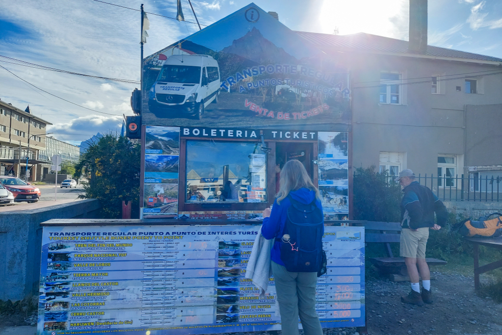 - There’s a ticket office for the shuttles in the carpark that passes for Ushuaia’s bus terminal.