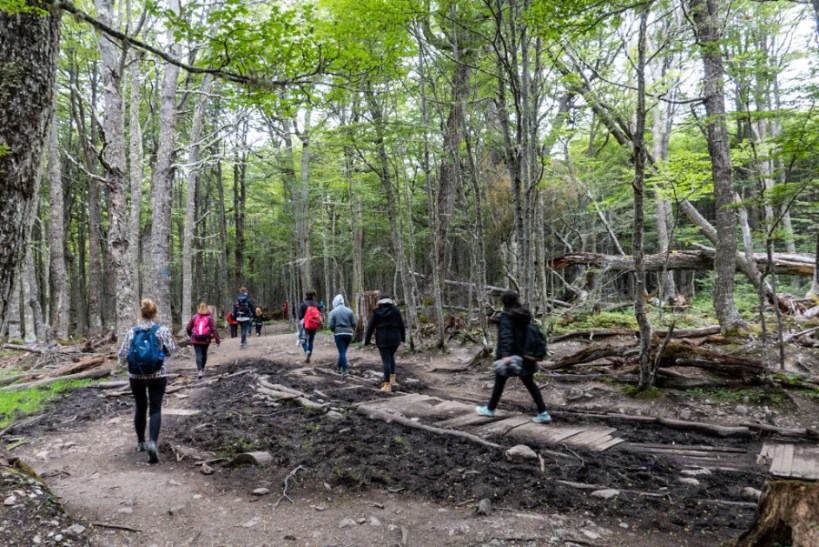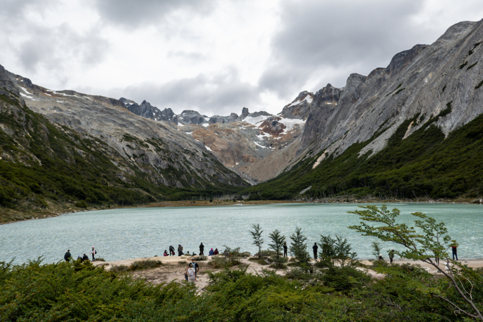 With a couple of days spare in Ushuaia we figured we’d go put some more stuff in our eyeholes. Lakes and glaciers and the like. Laguna Esmerelda, or Emerald Lake, is a very popular walk about a 20 minute drive from Ushuaia. You can take a shuttle so that’s what we did, at a weekend no less. You’re not going to have this hike to yourself I don’t think. By the time we got there the car park was already full and people had started parking along the road. We jumped out of the minibus and joined the hordes starting out on the trail.