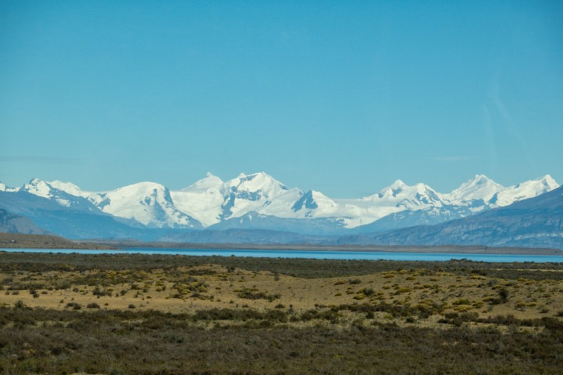 When trees started to sprout up she told us we were near the national park and sure enough we pulled over at the ticket office to part with the cash. She was also very excited about the weather, the sky was blue with some spectacular fluffy white clouds and the sun was rubbing its hands with glee at the prospect of all that epidermis it was going to claim. She kept telling us this wasn’t normal, that it was usually raining or at least cloudy, that you couldn’t usually see the Andes and she was going to take photos to show her family. She’d also definitely had more sleep than us judging by her enthusiasm but she wasn’t wrong to be fair, the eyehole fodder on the way in was spectacular with mountain views beyond Lago Argentino, South America’s third largest lake and the largest lake in Argentina.
