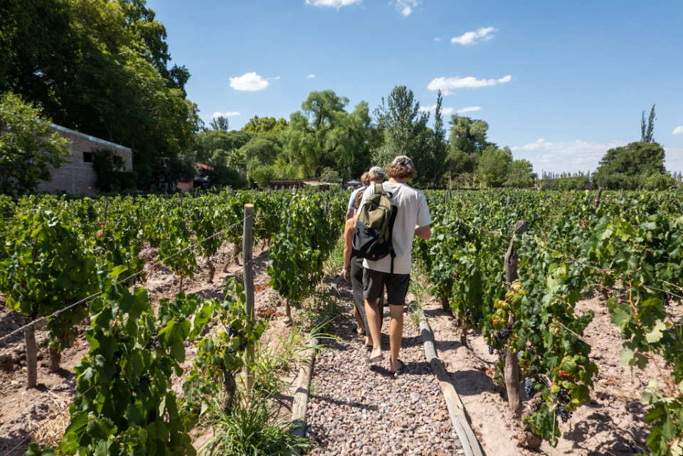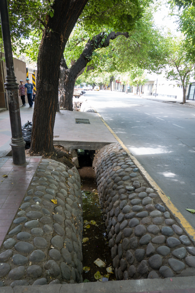 Let’s just quickly touch on irrigation, because the Mendoza region is hot and dry and it rarely rains. They rely on snow melt from the mountains for their water supply which is channeled through narrow canals called acequias and you can see these along the side of the footpaths in the city centre. Lorena told us that locals are used to them but it’s not unusual for tourists to fall in them. She obviously found this hilarious. To be fair I could see myself disappearing into one with a yelp because I was trying to Google the best milanesa in Mendoza rather than watching where I was going. Acequias are a gaucho invention, but they also use drip irrigation, an Israeli invention, which feeds the plant only what it needs thus saving water.