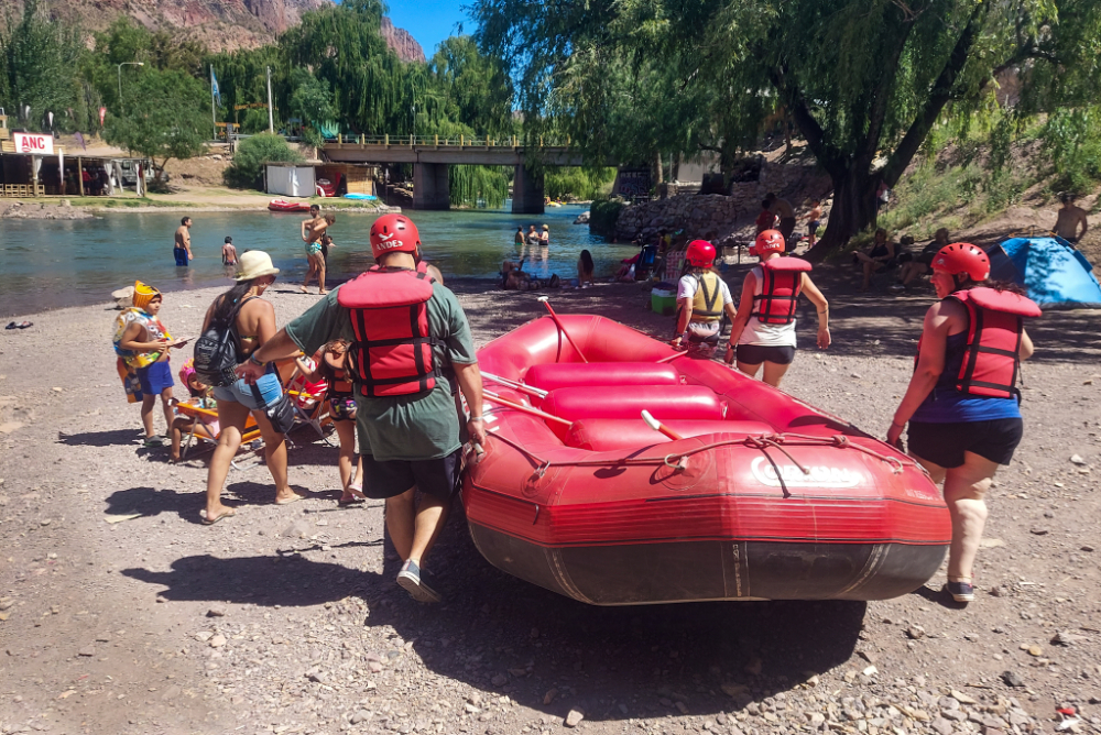 It turned out to be a lovely float down an astounding river with several low grade rapids. We were absolutely encouraged to hurl water at the other rafts with our paddles and fuck me, it was beautifully refreshing. Yes, this was an excellent idea. We sailed past people enjoying the river, sipping their mate. We saw loads tents pitched right on the bank and definitely got a bit of camping envy but those sites were absolutely packed. Ours was a lot less busy though it’s a Saturday night in Argentina so I doubted we’d get much sleep.