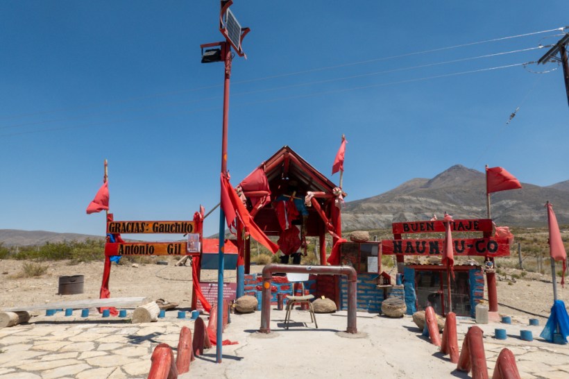 Another thing you’ll see a lot of are shrines and whilst some of them might be to honour loved ones lost on the road it turns out, according to the mighty Google, most of them will be for a saint unrecognised by the church called Difunta Correa, and an outlaw known as Gauchito Gil. We’ve seen loads that are unmistakably for the latter and now we know what we’re looking for we’ve seen several for the former too. Hers are the ones with the water bottles stacked outside as offerings from truckers to quench her eternal thirst.
