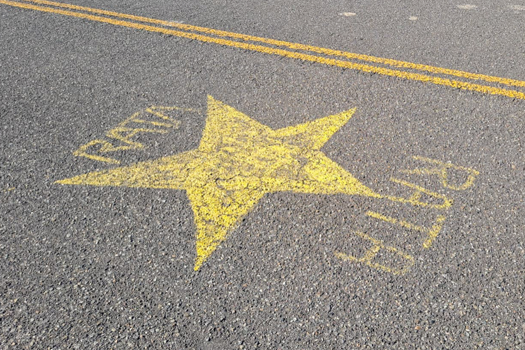 There are stark reminders of road safety or lack thereof all along the sides of roads. You’ll see smashed up vehicles long burnt out, or newer accidents, we saw two cars that had obviously gone head to head before leaving the road. They have yellow stars painted onto the road with names underneath, tragic victims of a crash. On one road we saw six stars all together.
