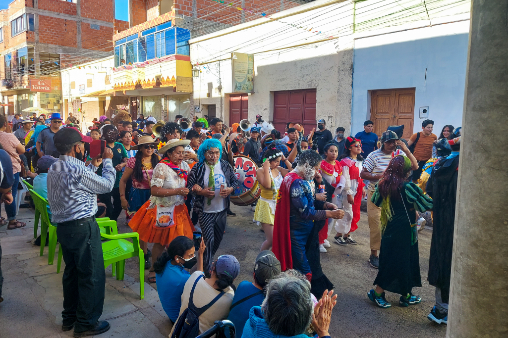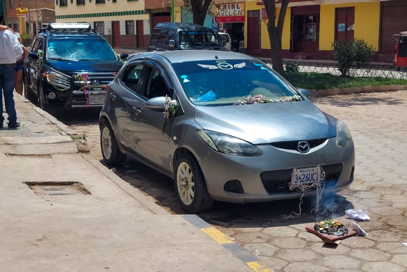 People had decorated their vehicles with streamers and balloons and they’d made piles of coals in front of the cars to burn coca leaves. Then they’d get a litre of beer and pour it on the wheels, then they’d take turns to shake the bottle and walk around the car, spraying it with beer. We stood and watched, absolutely fascinated. I’m going to assume it’s something to do with offerings to Pachamama, Mother Earth, for blessings. All over town people had these little coal barbecues, or they’d put the coals onto a tile, and it seemed they were all for burning offerings. Firecrackers were also very definitely a thing, they’d been set off all day by adults and children alike.