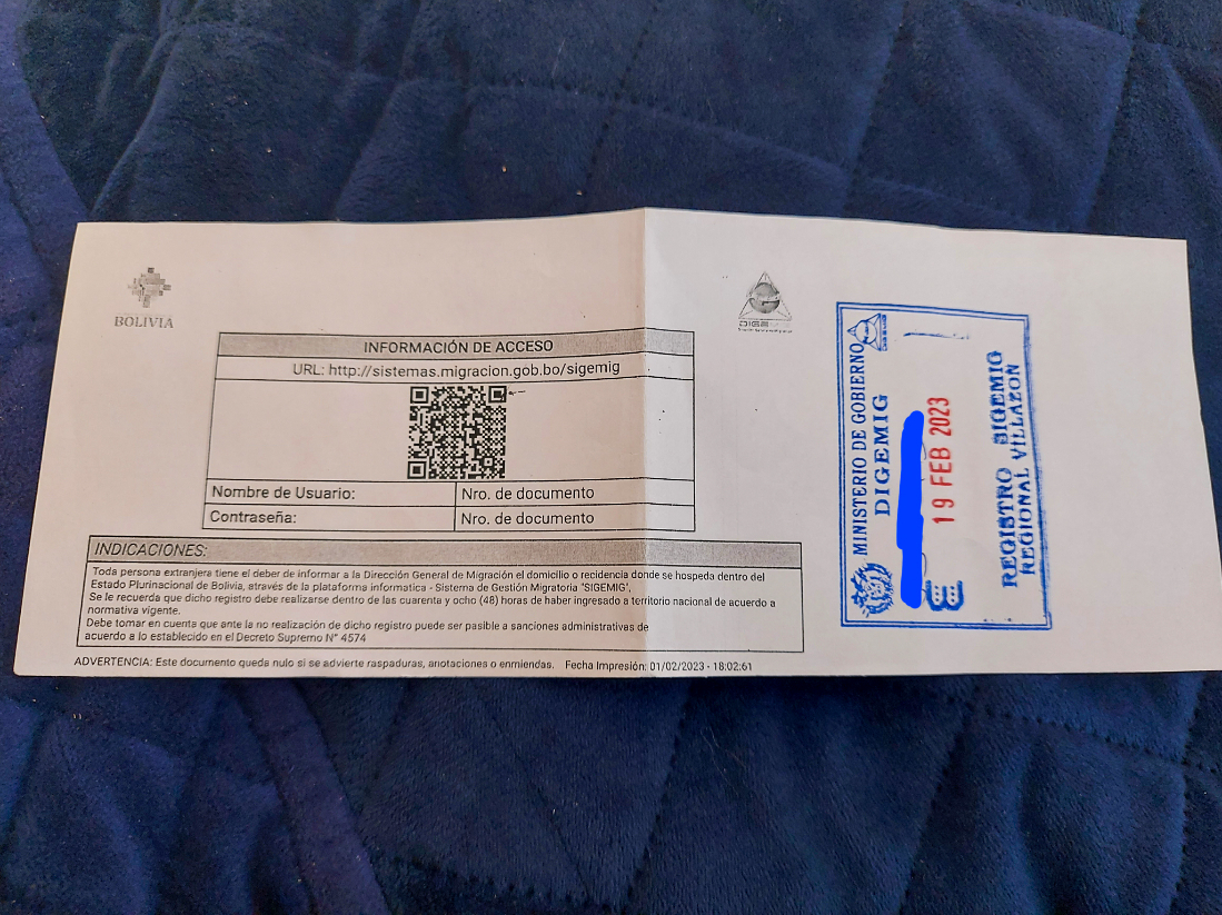 - The Bolivian government now requires you to fill out an online form detailing your accommodation.