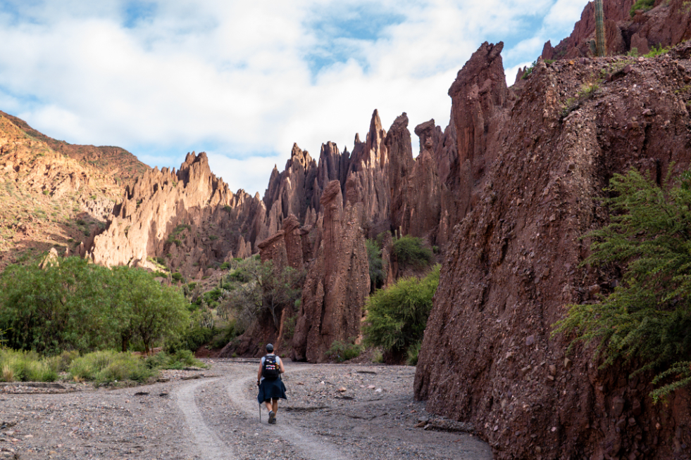 So there’s a little walk you can do to some named rock type things and no, we’re not bored of rocks yet. These are different rocks! We got up early on account of wanting to get as much of this circular walk done as possible before the air turned to lava and our eyeballs melted. None of this shit is signposted, you need a map, so carefully following a GPX file I got off the mighty Interwebs off we fucked to the outskirts of Tupiza, through a gauntlet of dogs.