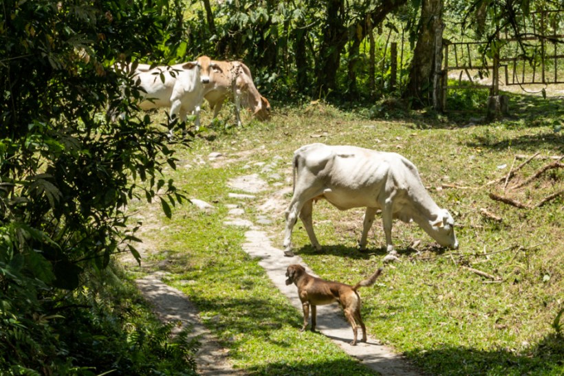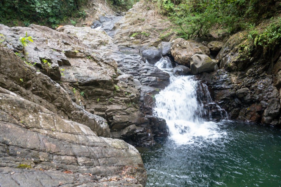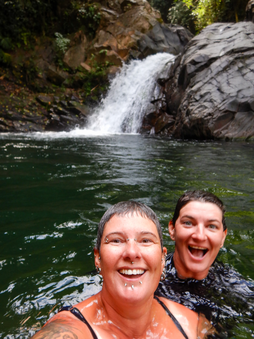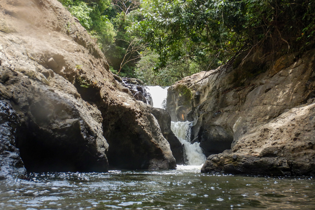 There are a couple of friendly dogs, they decided to join us for the walk to the waterfalls. It’s not a terrible walk once you’re there but you’re looking at about 250 concrete steps down in various degrees of fuck-your-calf-muscles (and you’ve got to get back up these bastards afterwards too) before you’re hanging onto a cable as you traverse some easy footpaths. We came to a gorgeous, very inviting pool and Erick explained the next stage. There’d be short ladder but that sounded doable even when you have the coordination of a three legged badger on ketamine, and it led to a gorgeous little waterfall with a perfect plunge pool and yes, this would do nicely, thank you.