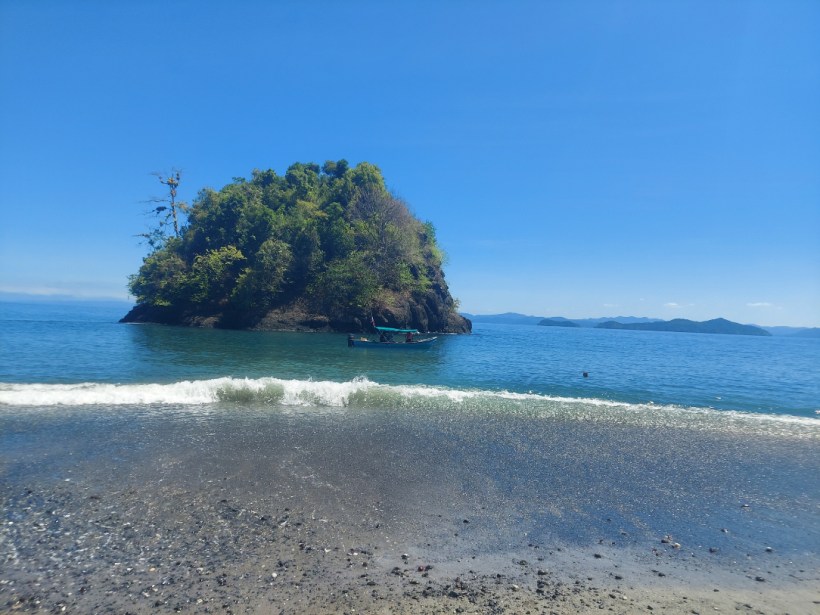 Once we were all back on the boat (and I’d had no issues on the ascent either) we were taken to Isla Coibita which is one of those postcard beaches. Golden sand, turquoise ocean, palm trees for days. Fucking gorgeous, but clearly you’re not going to be alone. Lots of tour operators bring their groups here which is fair enough. Sandwiches were handed out. I took one bite and realised that actually, no, I didn’t want it. Fuck. No, I wasn’t feeling good at all and my ear was starting to hurt. Ah bollocks, what have I done to it?