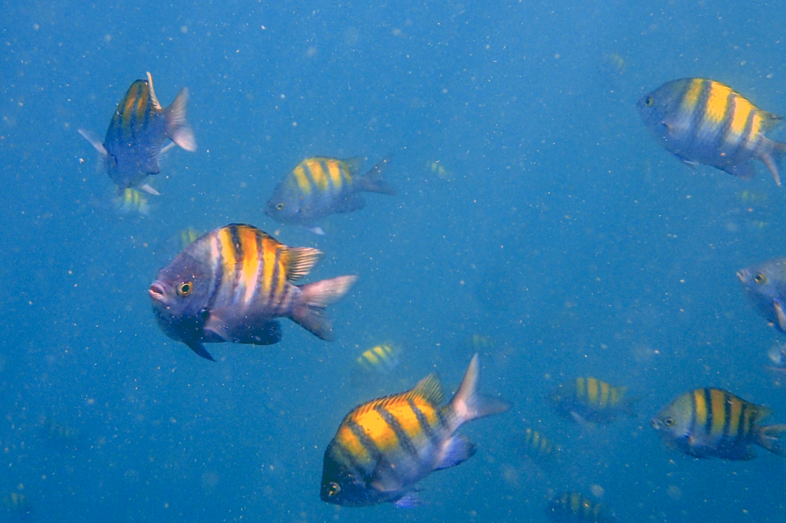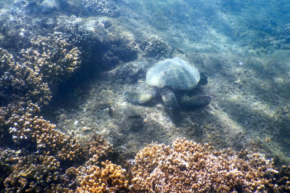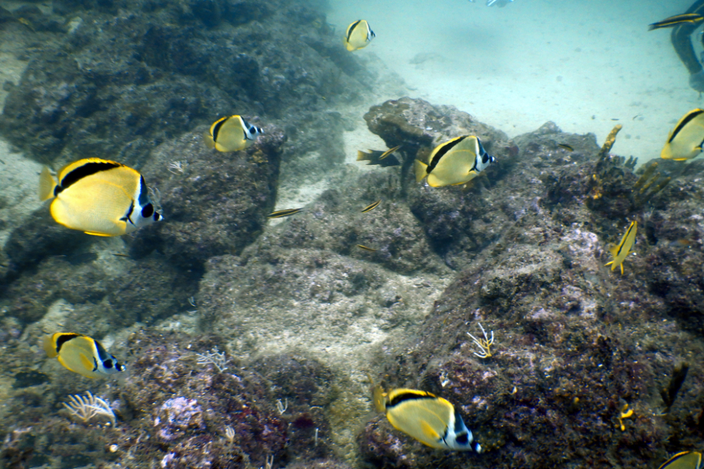 It was nice to just hang out for just over an hour. We swam and chilled and shovelled sandwiches and watermelon into our chops before clambering back onto the boat to head to Tortuga Island in search of turtles. We’d been entering the water from the beach so far but this time we’d be jumping in from the boat. I’d been keeping water out of my ear with a wax earplug moulded over the entrance of my ear but I’d been holding it in place. I hoped it would work if I was sliding in from a boat.
