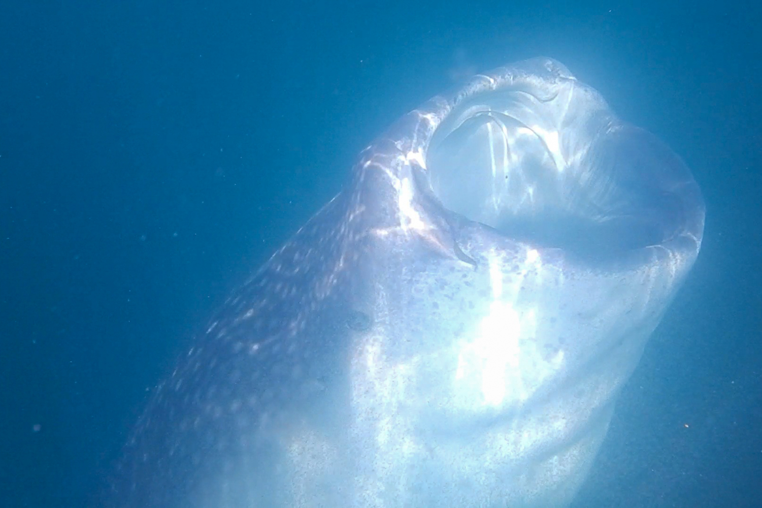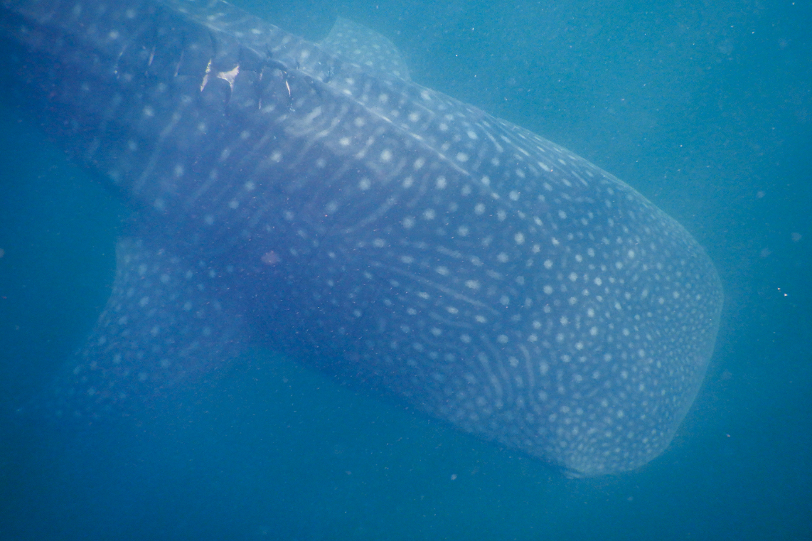 But it was when the others surfaced, that’s when shit got real. They’d had the most amazing experience diving with two whale sharks. Luis beckoned me over and shared his air with me on the surface as he looked for them. Then suddenly there it was! Far too fucking close but that was on the whale shark, we were just floating around. It emerged from the dark, even on the surface we couldn’t see more than a few metres, it was flapping its chops as it fed on the plankton that was thick in the water. Absolutely incredible. Like, can’t put into words incredible. I was happy for the others but now I was happy for me too.