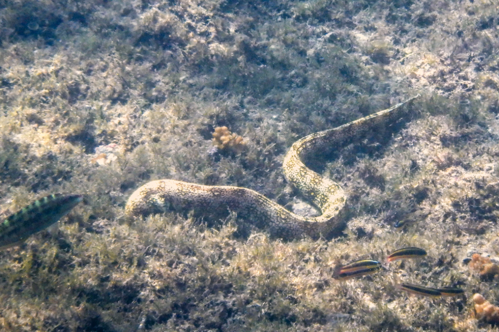Definitely take a rash vest for this, the jellyfish are tiny little fuckers, you can’t actually see them, but they’ll give you a proper little shock if they get you. Off we fucked then, bouncing along towards our first snorkelling site at Coco Grande, a small island that we’d be swimming around with the current. Tarrant couldn’t get over the sheer quantity of fish that gave exactly zero fucks about the human presence. You’d swim into them and they weren’t even bothered. Some of them headed straight towards your face, no shits given. It was great! We also harassed a small turtle, and I saw what I think is a tiger snake eel. I did see a tiny reef shark but it buggered off quite rapidly.