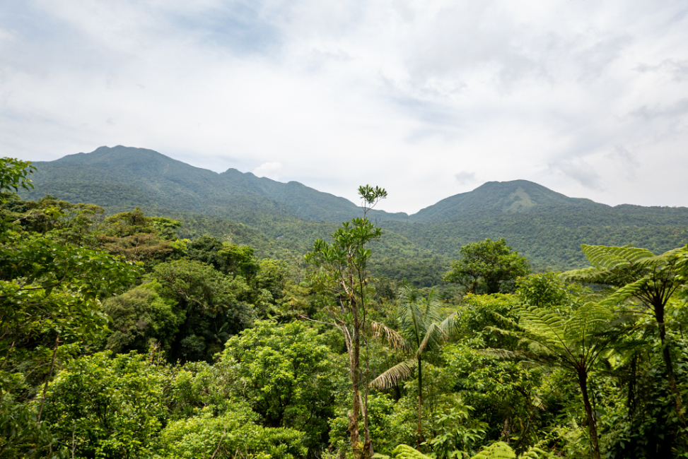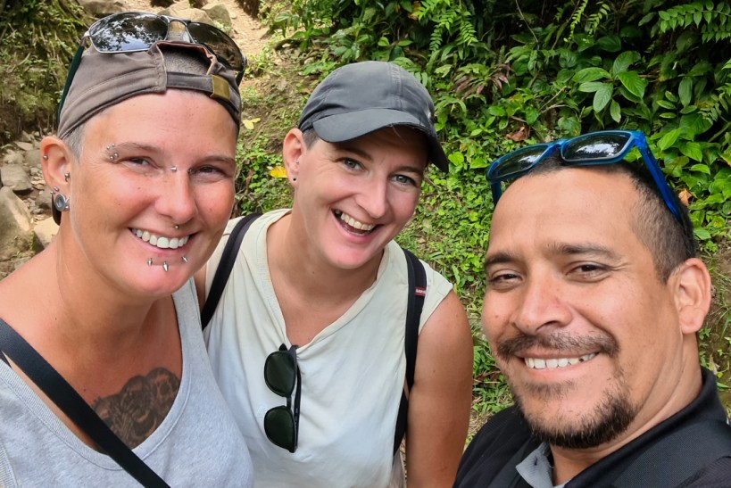 We slogged up a particularly harrowing section (harrowing for my calf muscles, I don’t need therapy or anything) before Mario waited for us sweating messes to catch up before announcing, this is the easy part. The real hike starts soon! You fucking what?! It wasn’t too awful to be fair and we were appeased with a cracking view of the local volcano, Volcán Tenorio, for which the national park we were in was named. We’d started getting whiffs of sulphur too, just in case we were questioning the volcanic credentials of the region.