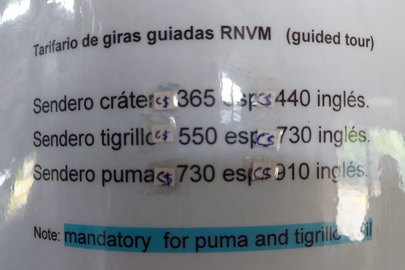 - Guide prices are per group and are C$440 for the Crater Trail (a guide isn’t compulsory for this one), C$730 for the Tigrillo Trail and C$910 for the Puma Trail. Prices are less for Spanish speakers.