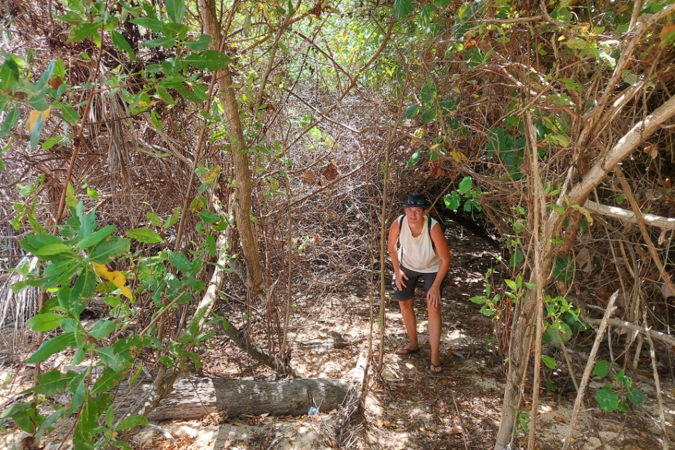 Everything on the island is walkable, the only form of transport is bicycle and locals will let you know they want to get past by literally calling out, “beep beep!”. After I visited a dive shop to arrange some underwater fun we wandered around the east side of the island. There’s a trail marked on Maps.ME but I think a lot of it is part of the seabed now so you get to decide whether you want to wade through the kind of sand that wants to engulf your entire being or battle through fallen palm trees. We mostly opted for the latter.