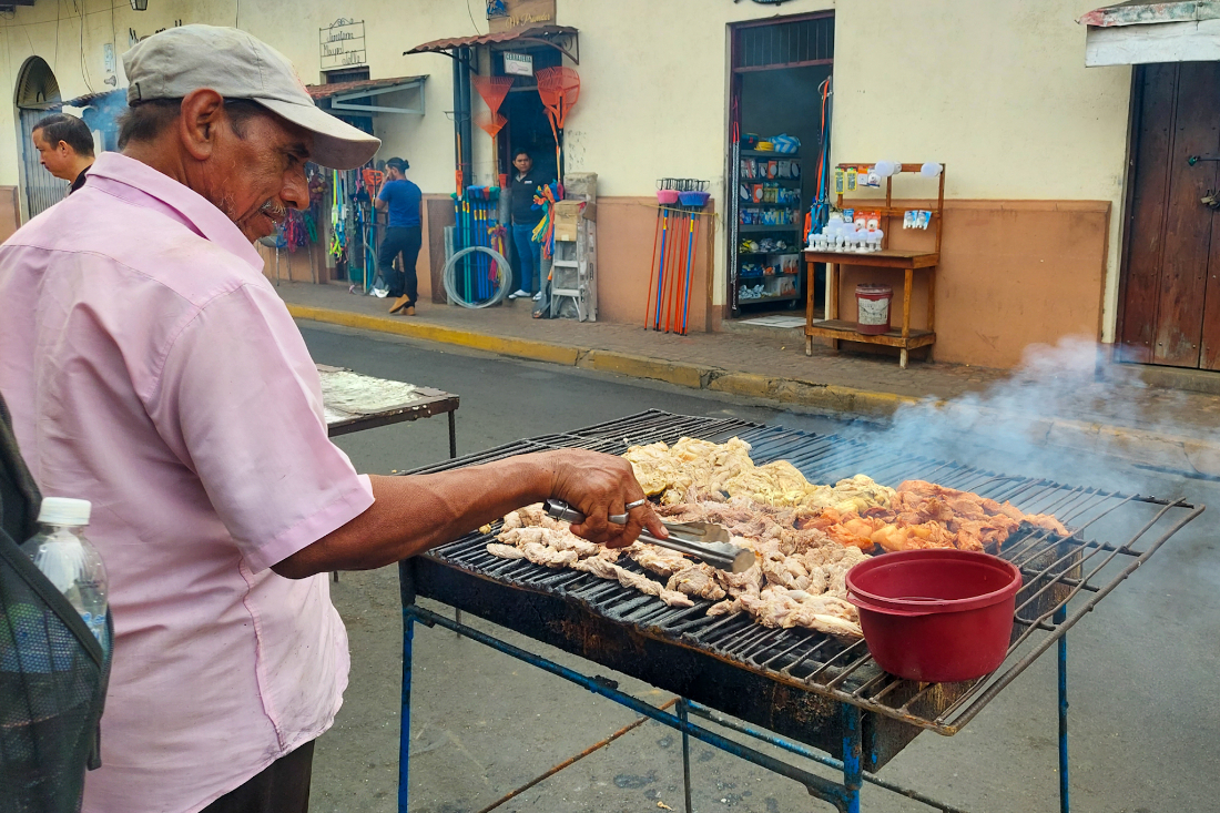 This tour though, it’s so well structured and he took us through the history of the country in chronological order, covering politics and offering snippets of information whilst leading us through the city, buying fruit and snacks for us to try, pointing out buildings and recommending bars, clubs and places to eat. Did you know that 60% of Nicaraguans live in poverty and 17% are illiterate? Education and healthcare is free for everyone but there aren’t enough chairs in the schools, universities are out of reach if your parents can’t afford for you to live in León or Managua, hospitals are dirty and rife with infection and people often die of conditions that would be easily treated in a developed nation. Also the market is an excellent place for lunch, you can find fritangas (grills) outside the market for dinner, 23 Bar is where you go to party and Bar Antorchas is where you go for a quiet drink. We were just saying to each other how Antorchas sounds like our kind of place when he added, “That’s the bar for old people.” Oh. Right.