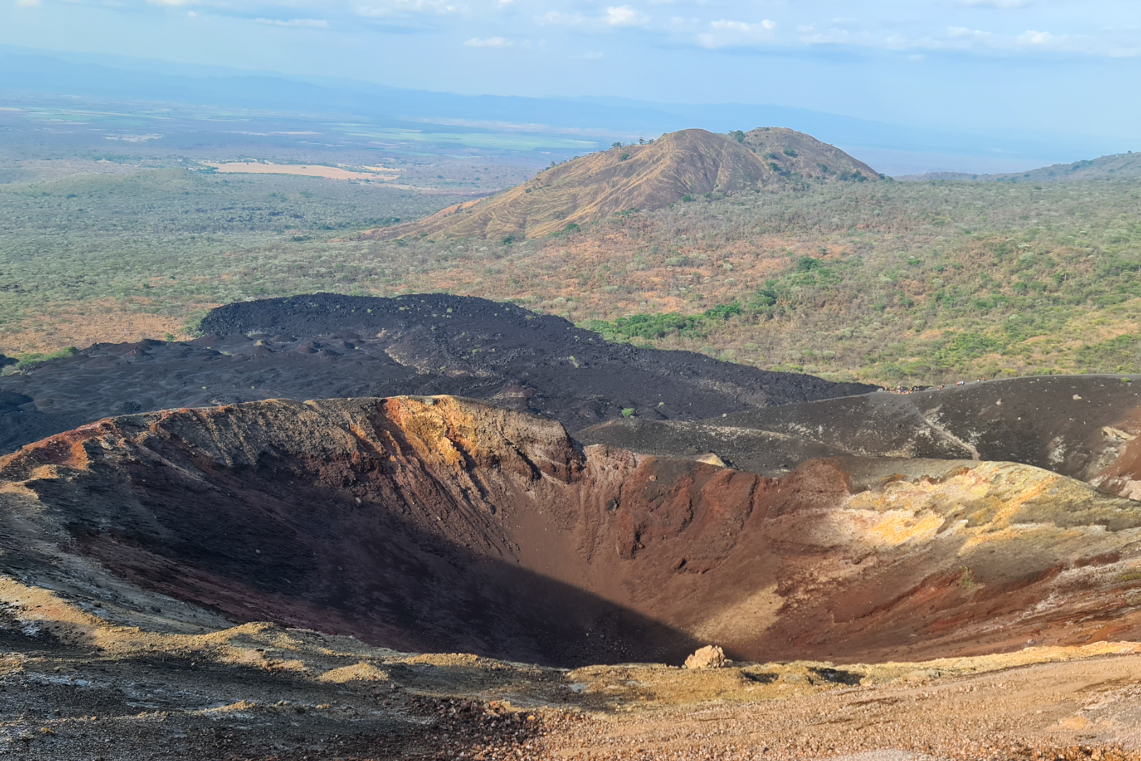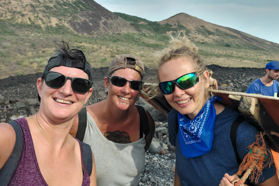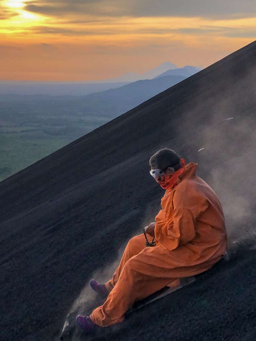 The ultimate “if you go to León and don’t do this did you even go to León?” is volcano boarding whereby you climb up an active volcano and slide back down it on a piece of wood. Cerro Negro, literally Black Hill, is the youngest volcano in Nicaragua and possibly the second youngest in the world at 173 years old. In volcano years that’s practically foetal. It’s a short arse too at 738 metres but we’d be doing most of that on a bus, thank fuck. This is also the only place in the world you can do this. The first bloke was an Aussie who owned Bigfoot Hostel, he slid down it on a fridge door. Trust an Aussie to look at a fucking volcano and think, “Bet I could slide down that cunt!”