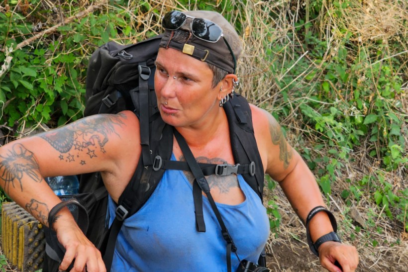 The car took us as far as it could, we all jumped out and loaded ourselves up and off we fucked. This first section from where we were dropped to the place we’d be having lunch was technically easy, it was only 4 kilometres and there was a bit of uphill but not much. Why, then, did I find it so fucking hard? The heat? The weight? The fact I’ve pretty much been incapable of even small hills since I got ill last year? I mean, I say incapable, clearly I CAN do them but not without puffing like a fucking steam train to the point people comment on it. Well I’ve got to breathe haven’t I, mate? Plus before I got ill I actually enjoyed the hills in some perverse way but now? No. I’d really rather not, thank you. But I wanted to camp on a volcano so here we were.