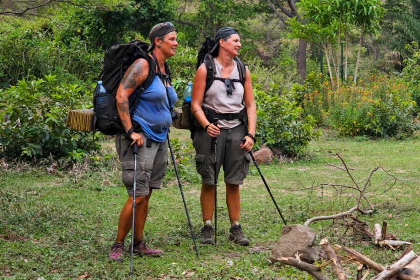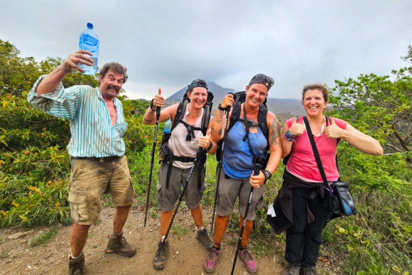 We rocked up and were given huge backpacks with a sleeping bag each, a mat each, and a two human tent. We piled our own stuff on top including six whole litres of water per person which is fucking heavy anyway but that’s what they recommend you bring, and the gear is obviously not of the high end, technical gear-snob variety that we favour when we hike back home. You certainly wouldn’t be perusing this shit on ultralight outdoor gear dot com. It was one hike and one night, I’m sure we’d cope. Can’t say the same for our aging knees, mind.