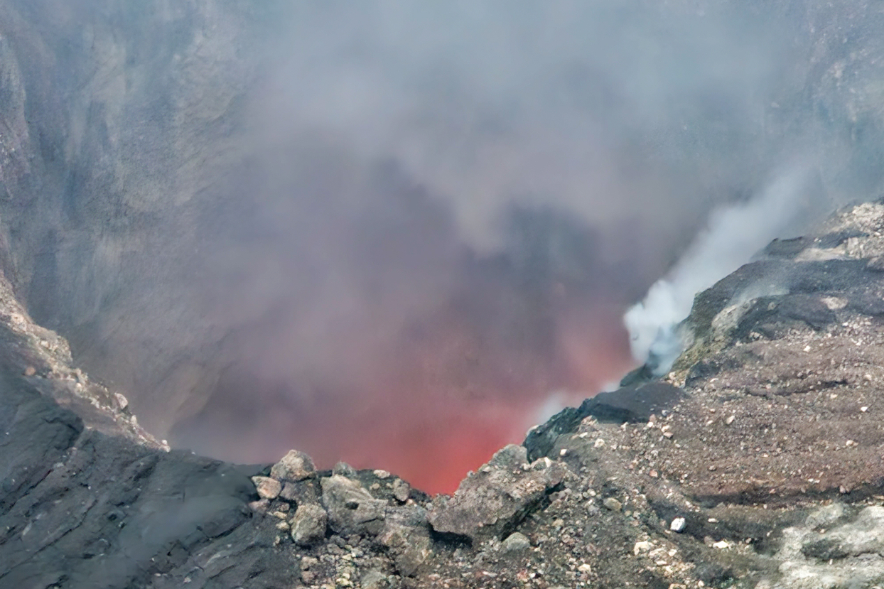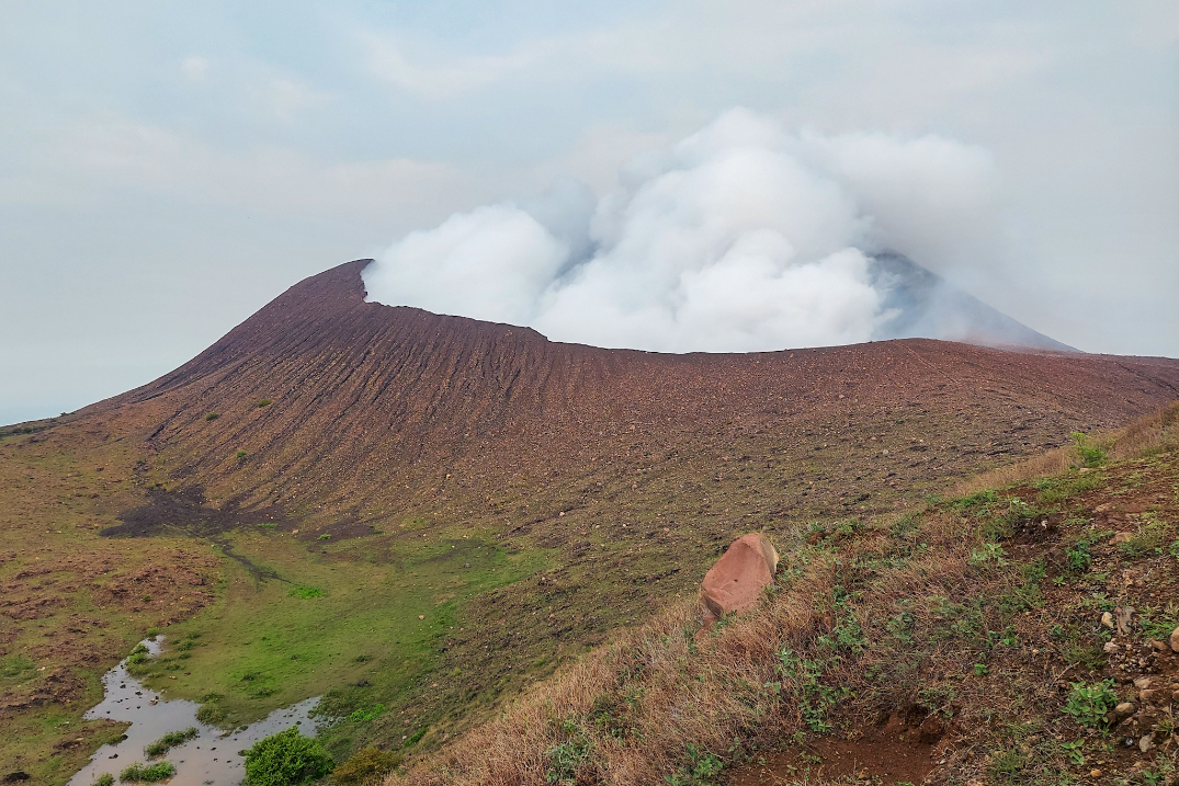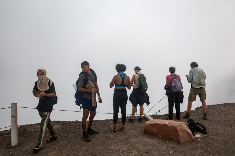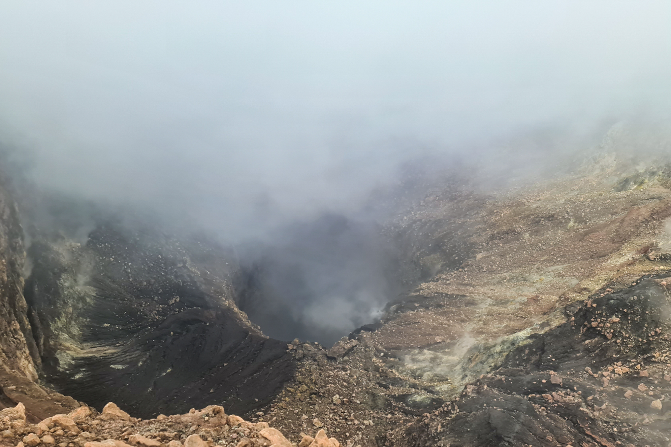 Guys, this was incredible. This was worth the pain of getting here. You can hear the roar of the lava and when the wind blows the steam away you can see the hole. You can’t see the lava like you can at Masaya but this is still pretty fucking awesome in the genuine sense of the word. The sulphur is strong though, so fucking strong which isn’t ideal when the only way you can get up a hill these days is by gulping massive quantifies of air into your lungs as it tends to result in gagging. I had my Bigfoot bandana from the Volcano Boarding so I wrapped that around my chops and… hang on, how did these other people get here?