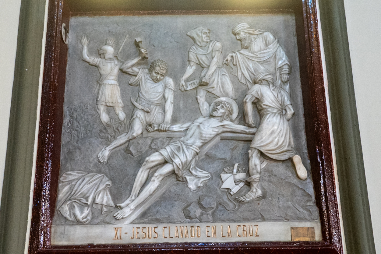 Erick took us around markets and churches today. There’s a souvenir market which we’ll definitely need to go to so we can stock up on tat. He took us to the market the street vendors were moved to and showed us the view from the top. We popped into Iglesia El Calvario which is a beautiful church built in the neo-gothic style, designed by an Italian with the stations of the cross rendered in Italian marble. It’s very beautiful inside and out. We popped to the cathedral but underneath to the crypt where they were having a separate mass to the one upstairs.