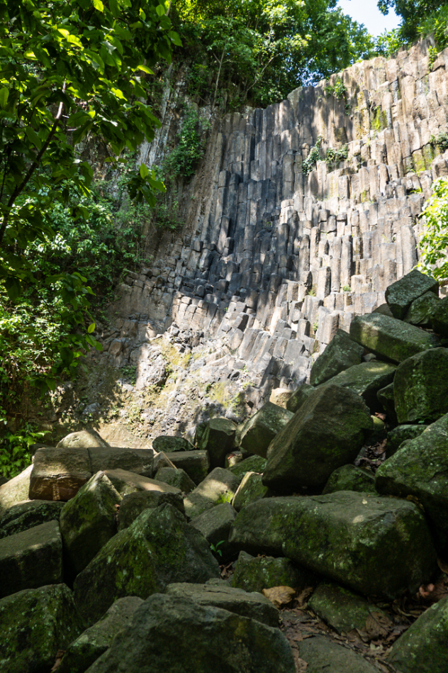 You pay your entrance fee to a friendly chap who’ll give you directions to a lookout and to the waterfall but he did tell us there was no water in it right now. It’s a shame as it would have been spectacular with water but even without it’s a natural work of art in itself. The area is made up of hexagonal volcanic basalt columns which happens when lava dries then cracks. Over time erosion and movement twists and separates them into these striking formations. What would have been the face of the waterfall is made up of vertical columns and to the right are horizontal columns and you realise you’ve been scrambling over big chunks of these columns that have broken away. It’s quite epic.