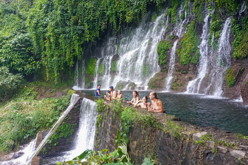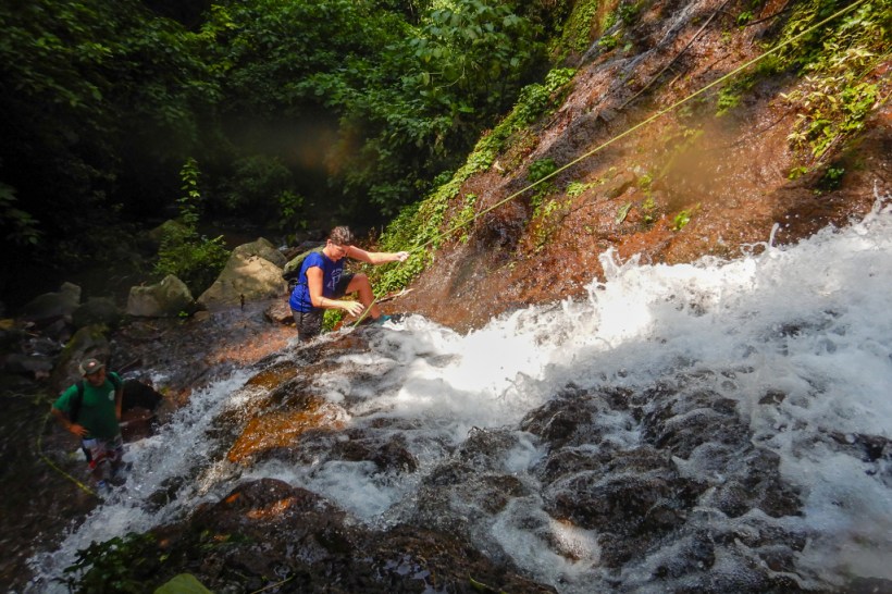 Obviously I’m going to try anyway. I was told you need a guide for it which makes sense given the potential to get stuck halfway up a waterfall whilst questioning all of your life choices so I WhatsApped a woman called Elizabeth who sent us off with her brother, Elmer, and three other tourists. We were picked up from opposite the church and driven to a trailhead which led down. So far down. No one said anything about this, it was pretty treacherous given the nightly rain storms and a lot of bum shuffling happened but in my opinion the butt is a perfectly acceptable way to get down a hill.