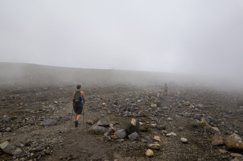 The cloud whisped across the landscape, obscuring pretty much everything. Oh do fuck off, I’ll not be best pleased if we walked all the way up here just to look at some mist. Don’t get me wrong, it’s actually a really lovely, really enjoyable walk with just the right amount of incline, and I’m very pleased we didn’t have to do this in blazing sunshine, but I’d very much like a bit of crater with my slog. It did not disappoint. You get to the edge and it is so very much worth every single footstep.