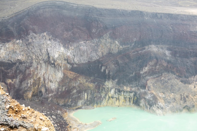 It’s a cracking crater with the volcanic colours we’d become familiar with splashed up the side as gas and steam ejected itself from the rock and wafted across this incredible turquoise lake. Absolutely stunning, probably our second favourite crater and yeah, you know your trip might have involved a few too many volcanos when you’re able to make a list of which ones you like the best. This definitely has a very good effort to joy ratio, very much skewed in the favour of the joy part. There’s also a bloke flogging ice creams so we definitely relived him of a couple because if he’s dragging that shit up a mountain every day he deserves your $1.50.