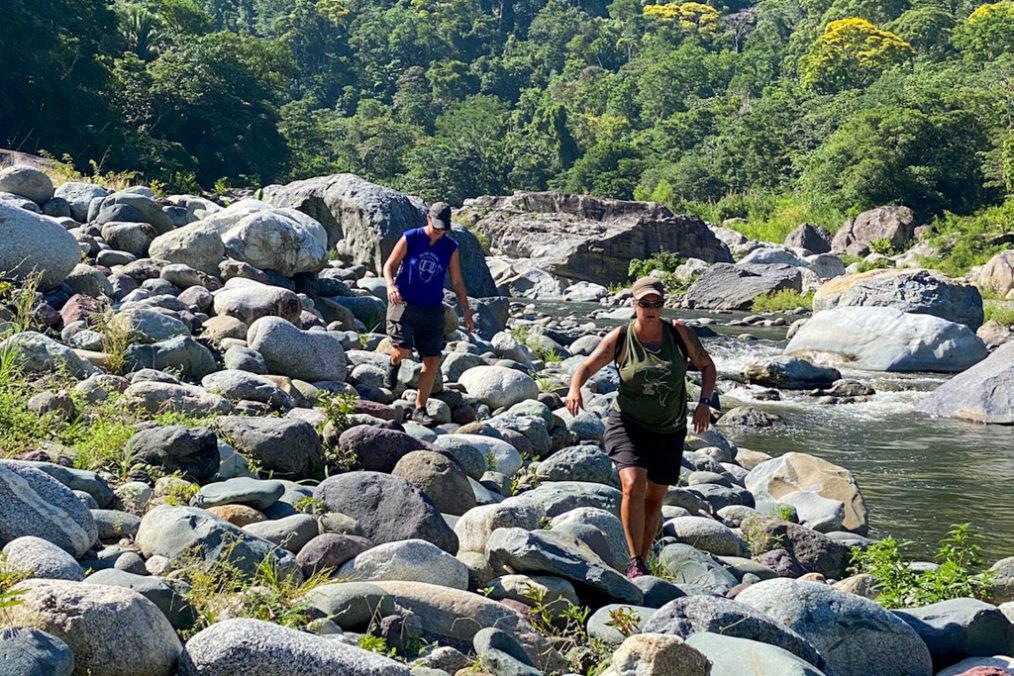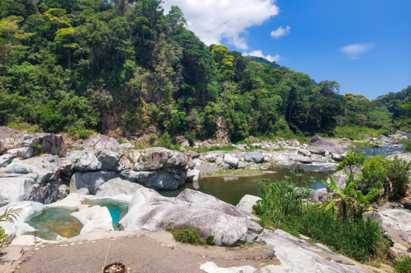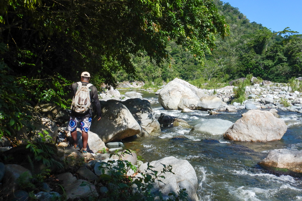 Kathy arranged a guide for us and on our first full day Juan Carlos showed up to lead us to a couple of waterfalls. The first thing he did was give us a choice: Did we want to walk up the road to Los Lobos entrance and start the walk there at the proper trail like the sane people do? Or did we want to head straight to the river and walk over the rocks to the trail? He repeatedly stressed the presence of many rocks. The rocks were not in any way a secret. He described it as “rocky and difficult”.