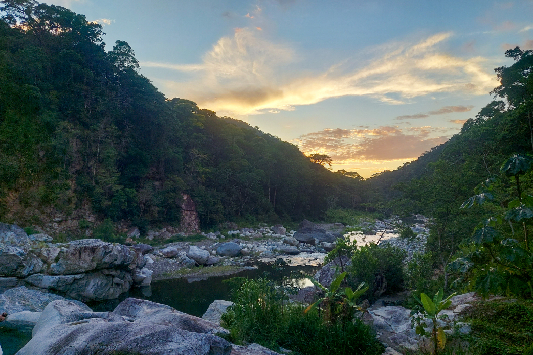 We ummed and ahhed about whether we should head the half hour out of La Ceiba or not to spend a couple of days by the Rio Cangrejal. It’s pricey. There’s only really one backpacker friendly accommodation and even that’s US$18.95 for a dorm bed, then once you’re there there’s no kitchen so unless you want to walk the twenty minutes to the nearest village you’re pretty much obliged to use the expensive restaurant. Fuck it. We’re on holiday. We booked ourselves into Jungle River Lodge and headed into the wilderness.