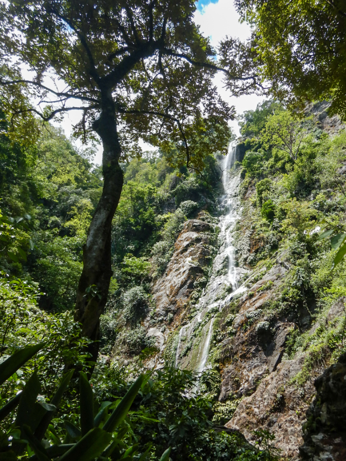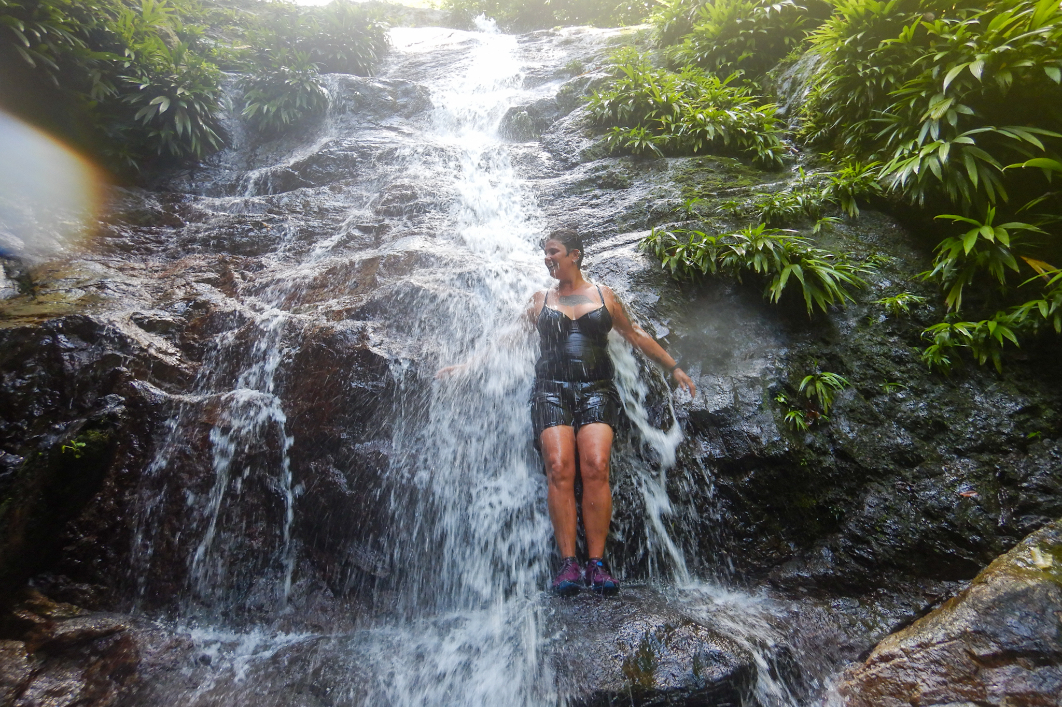 It was slow going but again, Juan insisted it should be. He’s a very good guide. I don’t have many photos of the climb because that would involve relinquishing the death-grip on whatever rock, root or branch that was stopping me from plummeting to my death. Okay, fine, I exaggerate very slightly for effect, I’m sure the whole thing wasn’t a vertical death trap but there genuinely was plenty of actual climbing before we got to the spectacularly tall Bejuco Waterfall. I gasped and clambered my way over rocks into the shade and plonked my arse down.