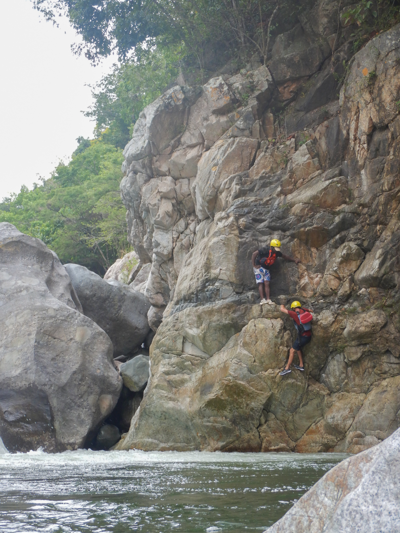 We were hot and dripping with sweat by the time we got to the first waterfall. Like, I don’t think I’ve drank enough water for this much sweat to be gushing from my face. Plunging into that water was the best thing ever, honestly, I could feel my blood cooling in my veins. We just chilled there for a while, Juan didn’t rush us at all, before we had to carry on up. And when I say up I mean literal climbing with your hands. Oh dear sweet fucking lord, what are we doing? This was very much way out of my comfort zone but fuck it, we were here now, no point in turning back and I really wanted to see if I could do it.