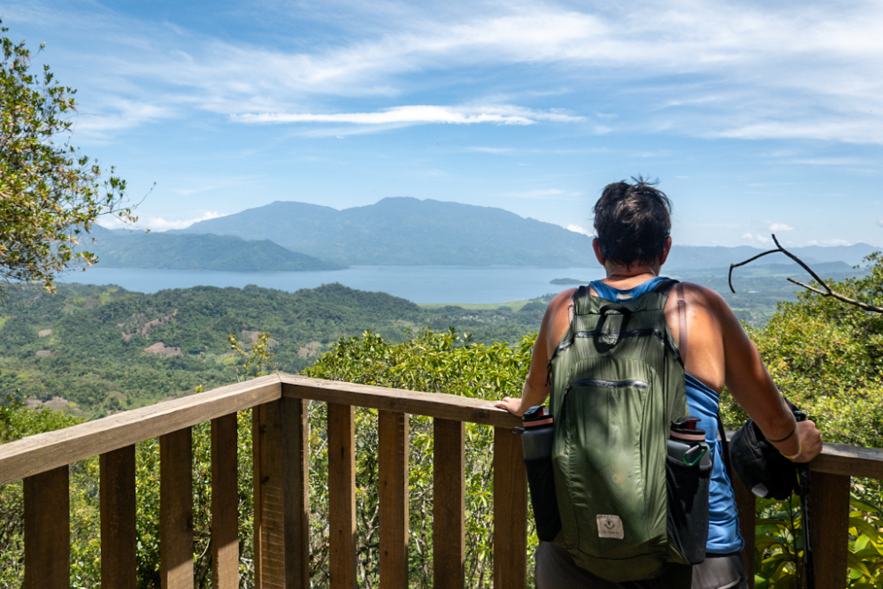 They’re kind enough to provide you with regular benches for you to vocally die on and there are some cracking views to be had over Lago de Yojoa so it’s not the ninth circle of Hell or anything. We laboriously hauled ourselves up until we were two kilometres in and a sign announced that we were now at the highest point on the trail. Oh. Good. Well that’s that then, and it did indeed turn into an incredibly pleasant stroll after that. Plenty of down, still a few up up up sections, even some flat bits. The trail gods were spoiling us.