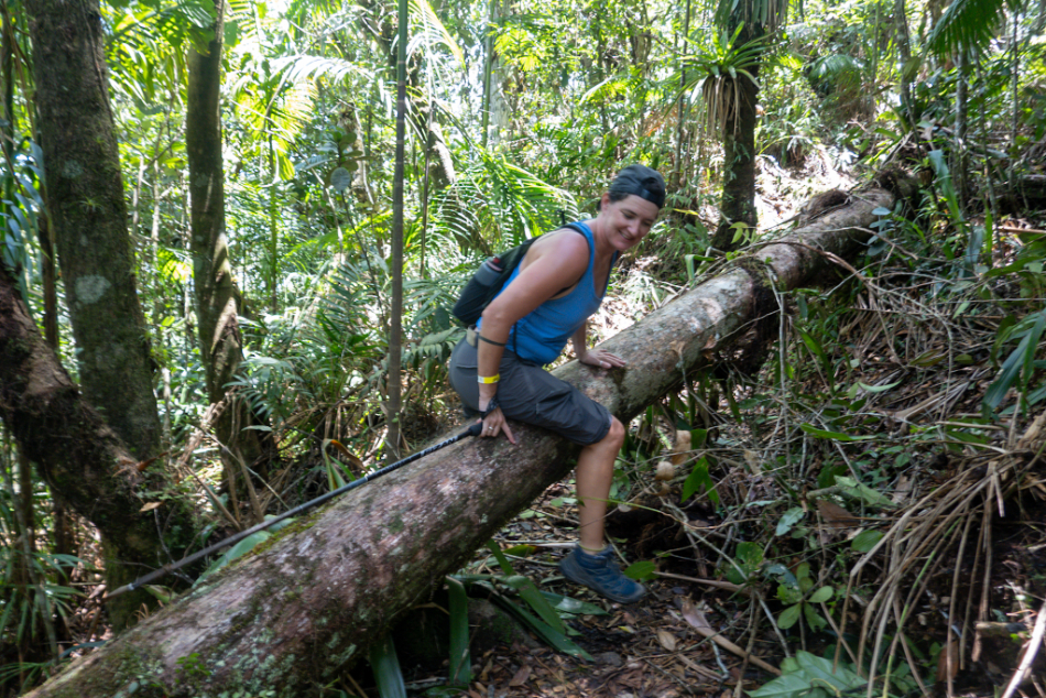 So the first 500 metres are a breeze, then the trail splits and we headed left up the Sendero Senai. You know how far you’ve gone because they insist on telling you every 500 metres. This is a blessing and a curse because guys, once the trail splits it starts going up. And up. And up. It’s particularly fucking brutal, especially with the heat and the humidity, and how the fuck haven’t we done another half a kilometre already? Where’s my damn trail marker?