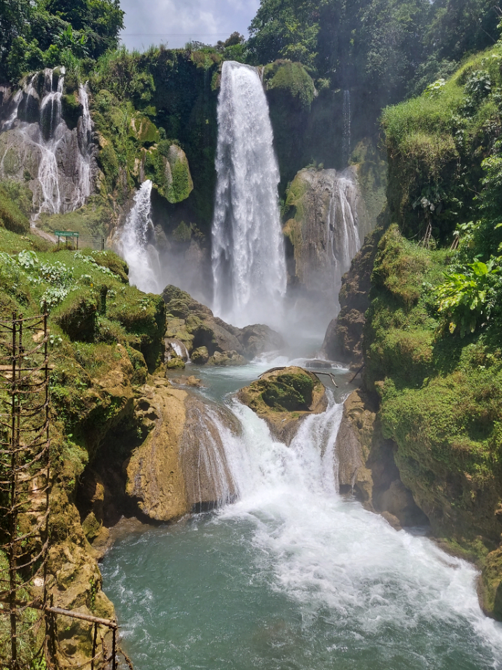 Pulhapanzak Waterfall though, now that was a highlight and only one bus ride away rather than the three bus mission we endured to get to the caves. Once you’re deposited on the main road you’ve got a dusty, fifteen minute walk to get to the entrance where you pay your fee and you’re free to submerge your entire being in fresh, cold water. I say cold, it’s not bastard freezing or anything, your nipples aren’t going to be visible from space but you will incur a couple of involuntary monkey noises when it gets to your belly button.