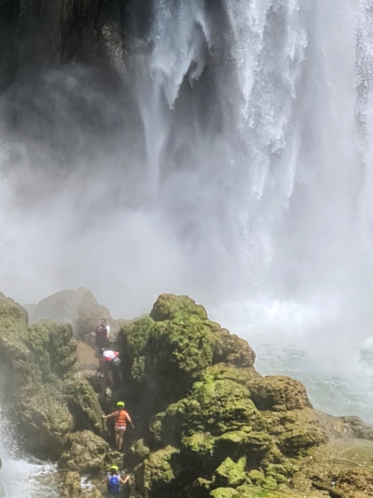 You can pay extra to be guided behind the waterfall itself. Yes please! Tarrant wasn’t keen at all, she’d slipped a few times on the rocks at Rio Cangrejal and being hurled from a raft does tend to bugger up your confidence somewhat. Then I read a blog that built it up into this big, scary once in a lifetime adrenaline rush with questionable safety standards so she was like, fuck no! I was still keen though and it was absolutely nothing like what the blog said it was.