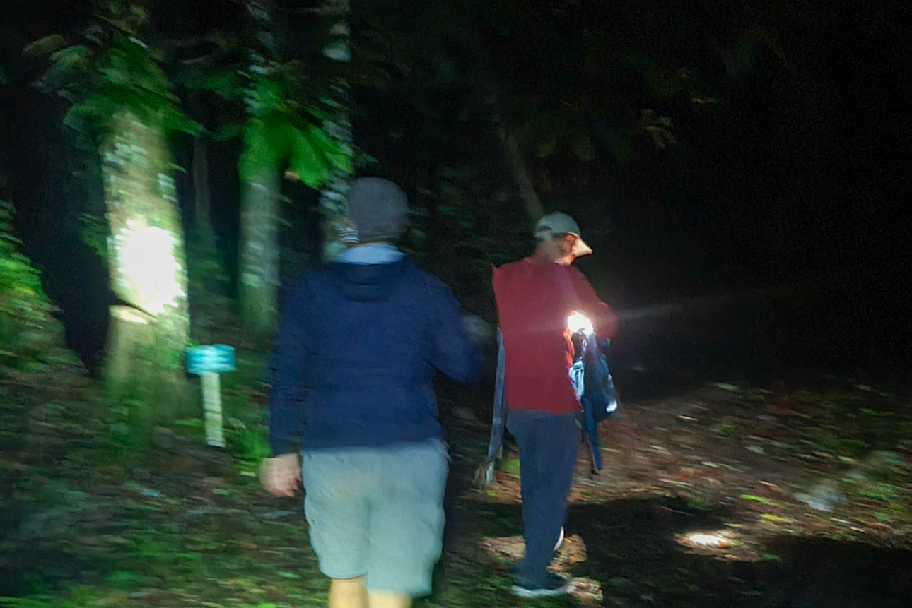 We booked ourselves onto a guided night walk through D&D which was cancelled the first night on account of the rain, then it stopped raining and would have been perfect but hey, it’s the weather in the Tropics, it does whatever the fuck it wants. The evening we actually went started off dry, and by “dry” I mean the wet shit wasn’t actively falling from the sky but it had rained in the afternoon so we’re not talking the Sahara here.