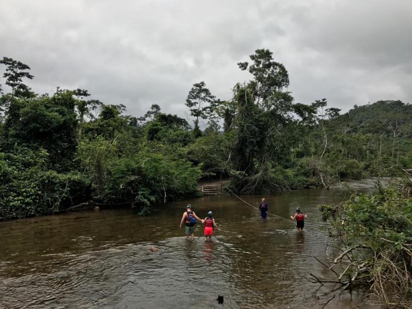 Officially, life jackets and helmets are mandatory, not all agencies enforce this but Maya Walks do. I’m pretty confident in water but if you’re going to give me a life jacket then I’m going to be more than happy to wear it. It’s nice just to be able to float, it’s just one less thing to worry about when squeezing my considerable bulk through tiny holes. Kitted up, we walked the half hour to the cave entrance, and straight away you have a river crossing, the water coming up to your chest, but with the life jacket you can just float and pull yourself along with the rope they have strung across the river. There were two more rivers but they weren’t deep at all and I tell you what, it’s bloody fresh compared with the Caribbean Sea.