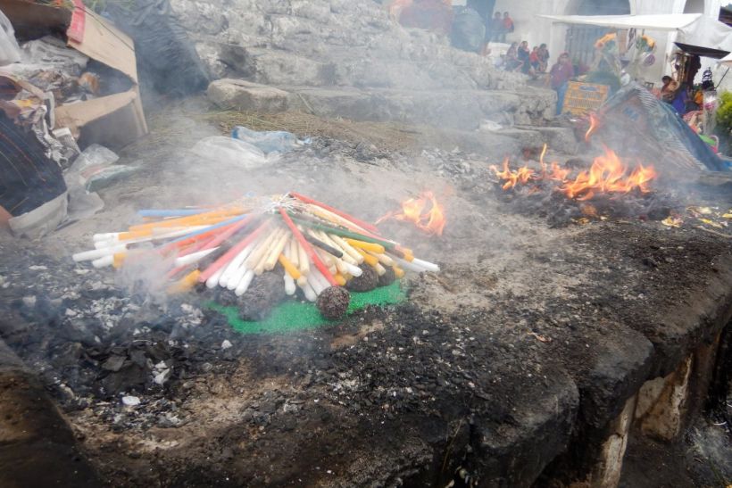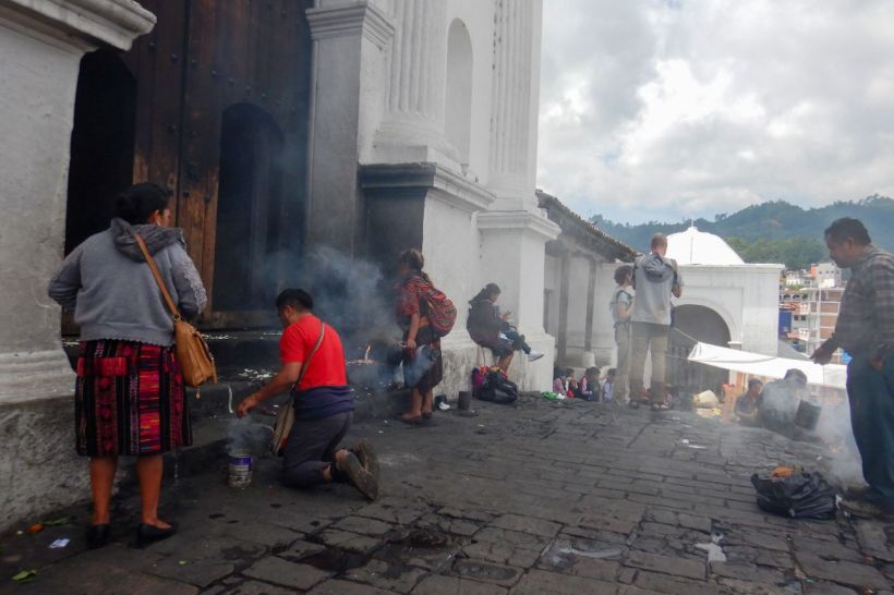 But it’s not just the markets that are worth pointing your eyeballs at, the steps outside of the churches were alive with activity. Catholics were swinging thuribles full of incense around outside the door, other devotees were building small pyres on the alters at the bottom of the steps for whatever Mayan rituals they were going to perform. Flower sellers had set up on the steps too, it was beautiful chaos. The churches are built on the sites of former Mayan temples and the original steps remain so the Mayan/Catholic fusion is woven into the architecture too.