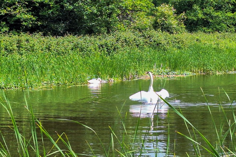 The next section was a cycle path along the side of a duel carriageway so that was a bit bum-clenchy. Vehicles thundered past us at 70mph as we strode/hobbled * (* delete according to which lesbian you’re referring to) along the terrifyingly narrow shared footpath and cycle lane. It went on for an uncomfortable quantity of miles before it spat us out by a river which we followed to Marshall’s Arm Nature Reserve.