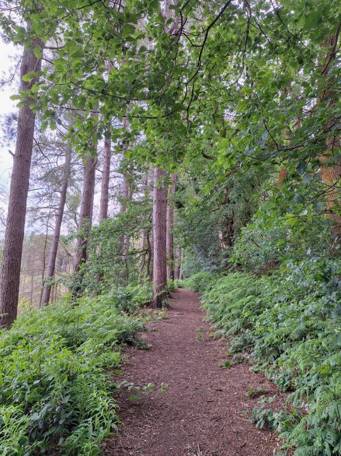 Anyway. We jumped off the train at Mouldsworth and started off up the road. It wasn’t long at all until the road gave way to a lovely woodland walk. As in, it was amazing. The sun was out which is always good for the mood and the trail was beautiful. Wide, easy to walk on, well waymarked, beautiful trees stretching up to the sky and lush, colourful vegetation all over the place. This was Delamere Forest and it was an utter stunner, a much more pleasant start to the day than, well, either of the other two days. Certainly yesterday.
