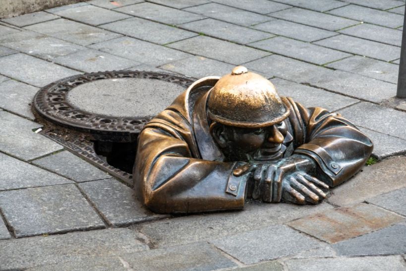 Martina pointed out a few things as we meandered through the city including a statue of a bloke crawling out of a manhole who is, apparently, the most famous statue. There was a water fountain that served birds humans and horses, and a holocaust memorial on the site of an old synagogue which was demolished along with the entire Jewish Quarter to make way for the huge highway and bridge that the UFO tower straddles. Bratislava is a great city. It’s clean, safe and walkable with a nice vibe, but it’s not pretty like Prague and this is apparently on account of the fact in the 60s they decided that one of the two capitals needed to be the industrial capital. The bridge leads over to Petržalka which is apparently one of the most densely populated suburbs in Central Europe.
