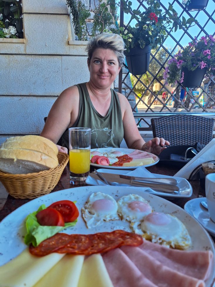 We sat and had a cold drink in a café before we headed back to the campsite. It’s a nice campsite actually. Very peaceful but again, we’re in the off season. What we did do though was leave the food bag in the tent vestibule and the cats helped themselves to the salami which was a rookie error. They also put a tear in the tent with their furry little murder mittens which is fair enough. They’re cats. They don’t have the opposable thumbs necessary to operate a zip. To be fair the reason we use this tent is because it already had a kitten-related encounter in Greece so it is now the tent we take to places where a large quantity of the residents have knives for hands.